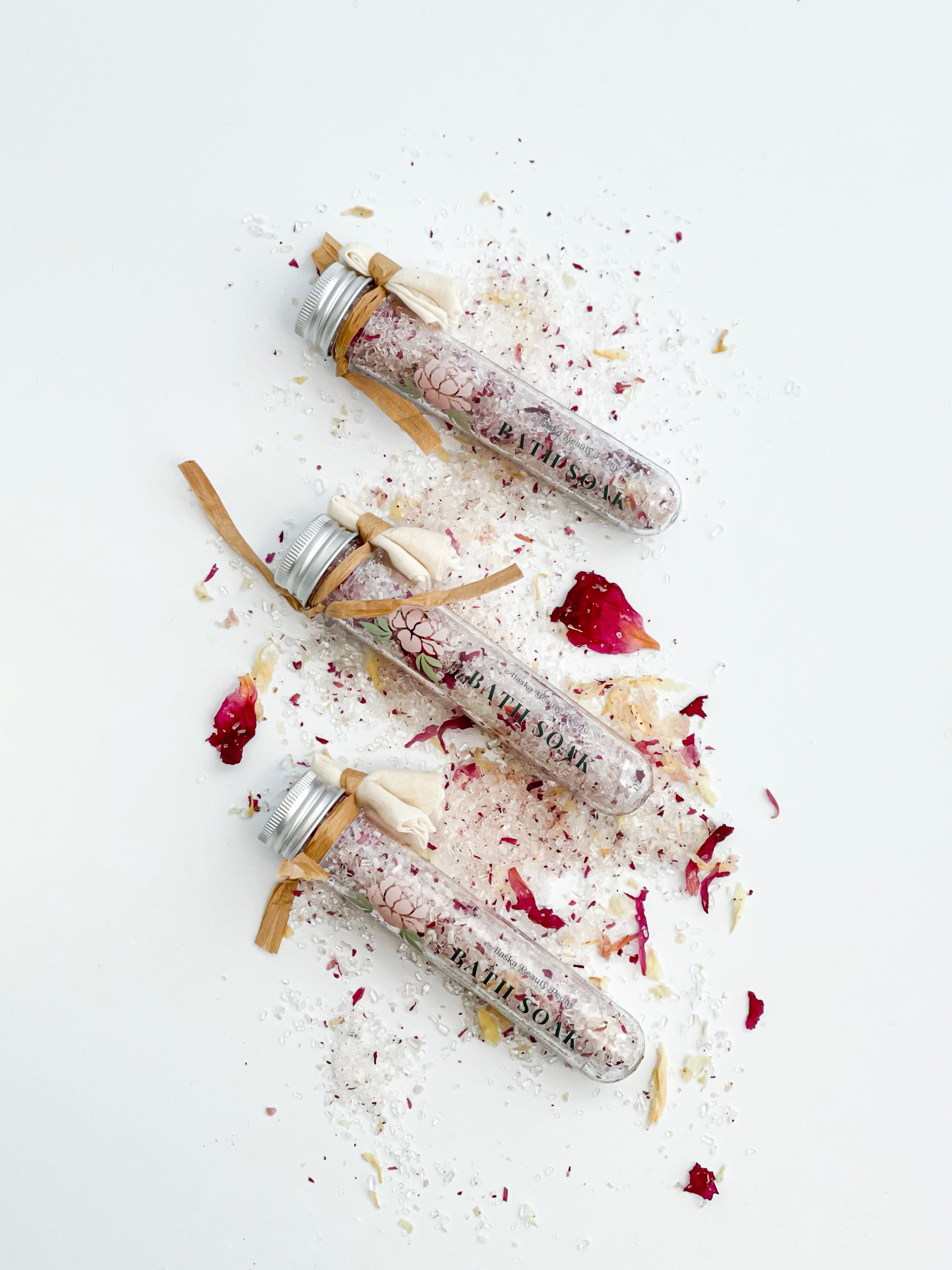We have hand crafted Peony Bath Soak from our sustainably grown flower petals. This stress fix is formulated to promote self-care. The bath soak kit includes a refillable muslin bag to keep your tub clean. This travel friendly size makes a great gift for someone special or for bridal party favors.
